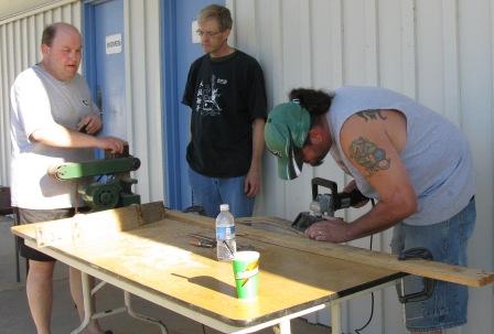sanding, is drilling the staves for dowel pins. >>