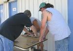 being put on a practice drum. These practice drums are made from the cut off